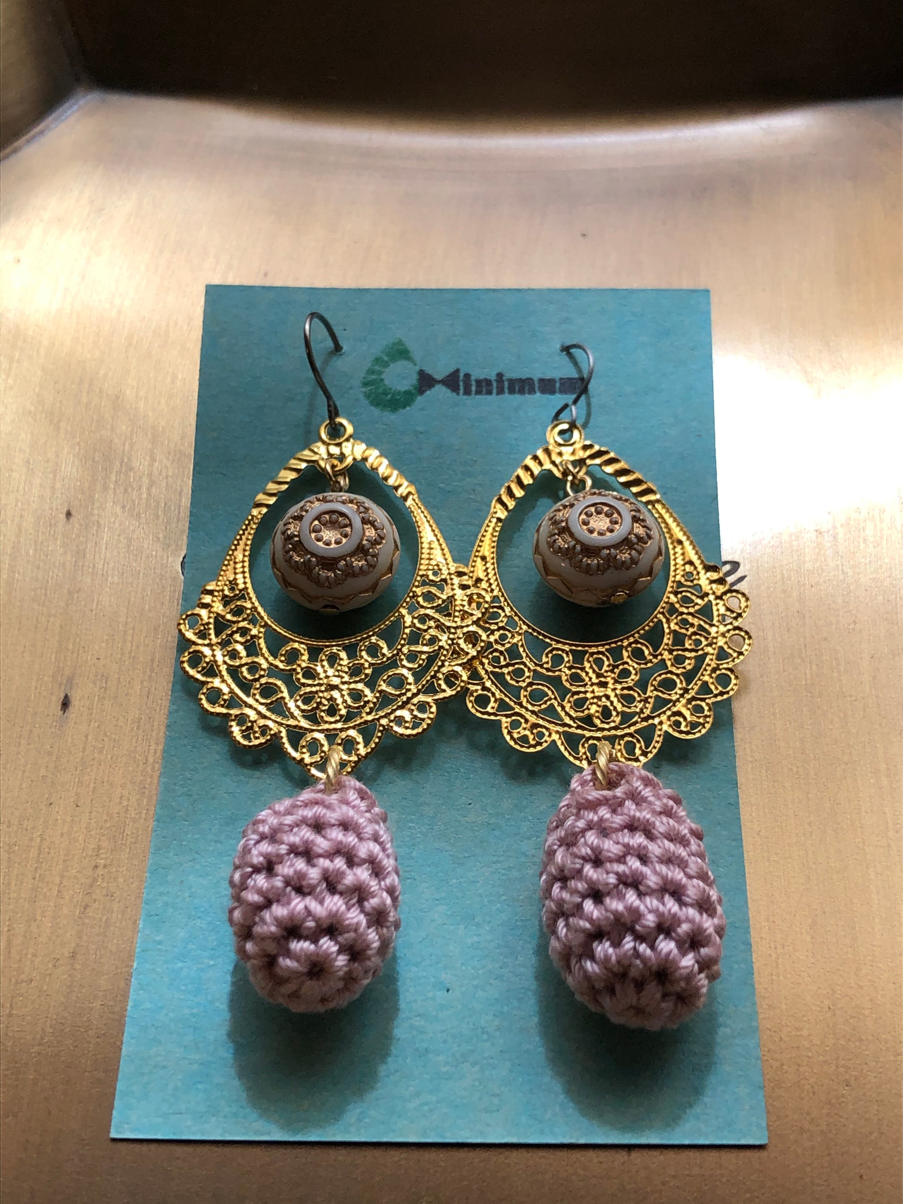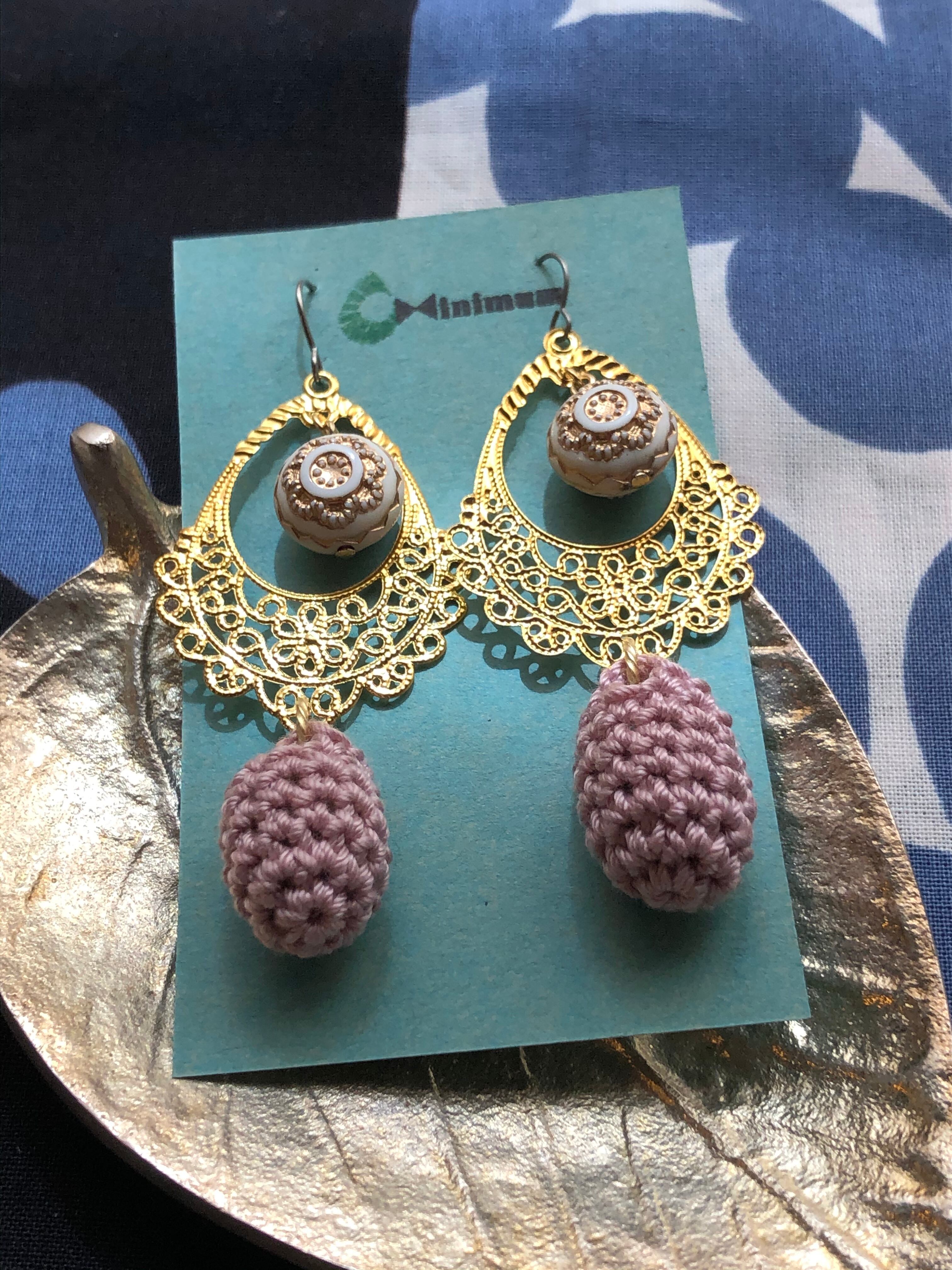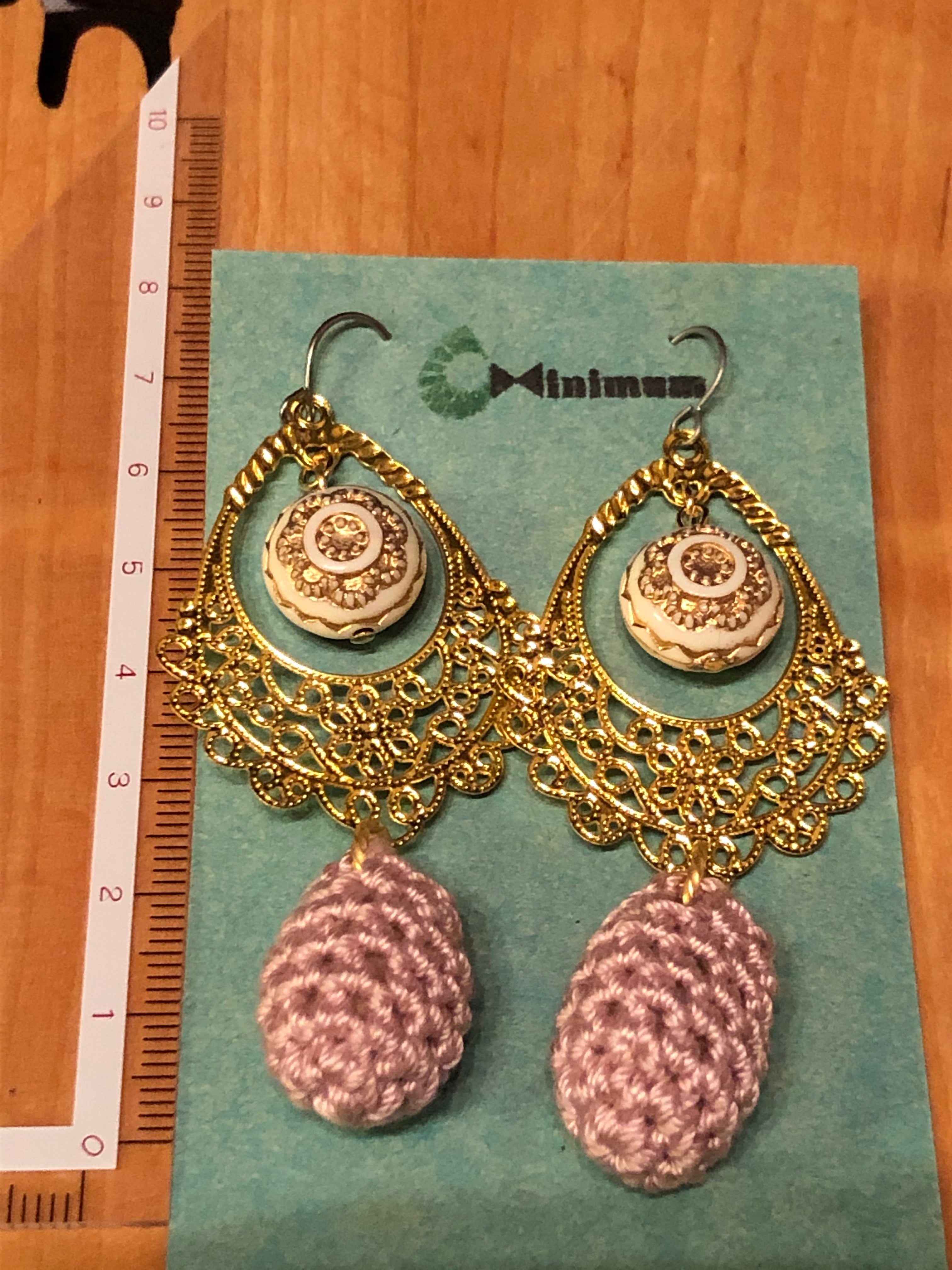 少し大きめのドイツビーズ(パンケーキ型)の組み合わせは、ビーズがゆらゆら揺れてまるで鐘のようです。