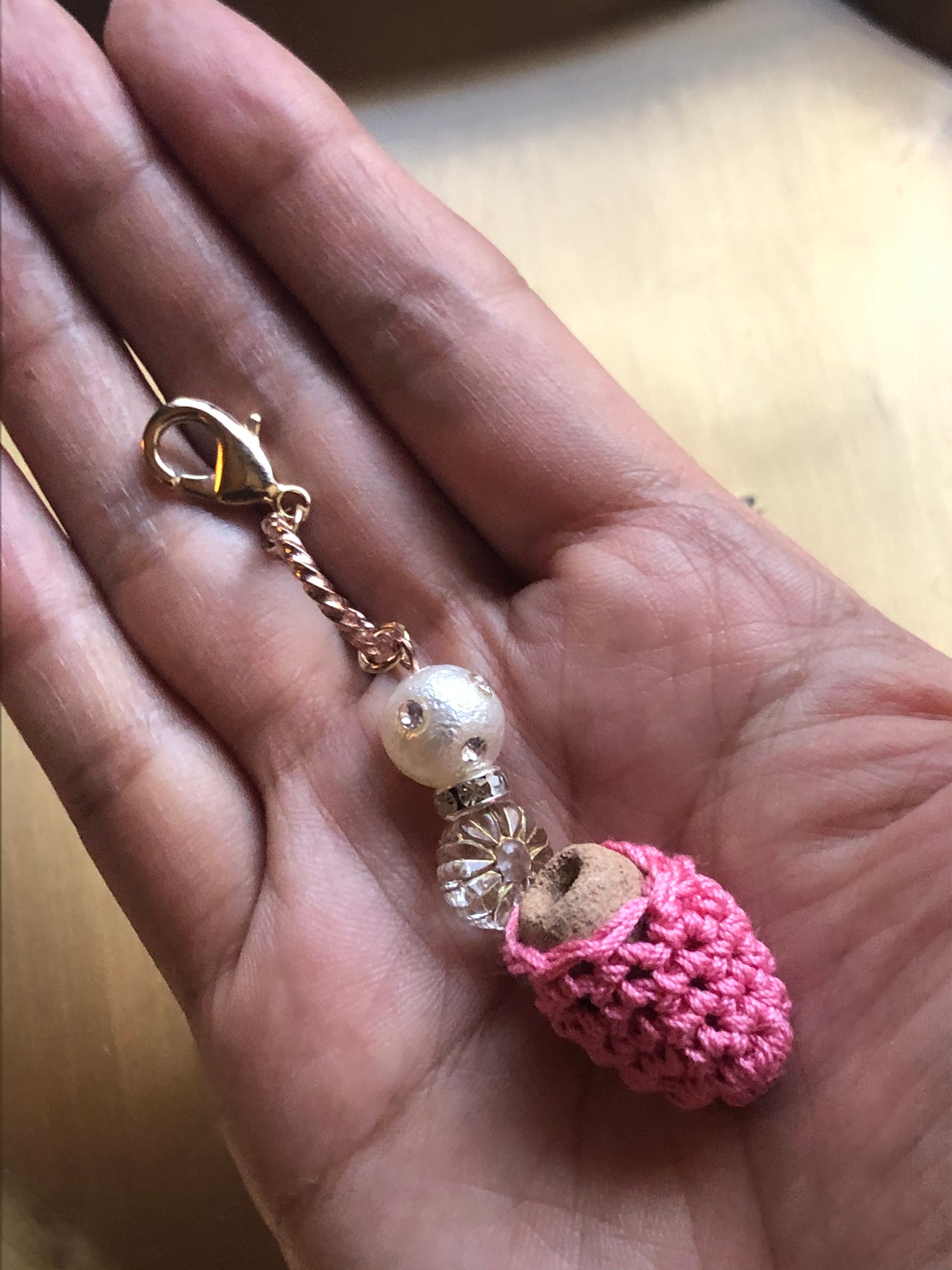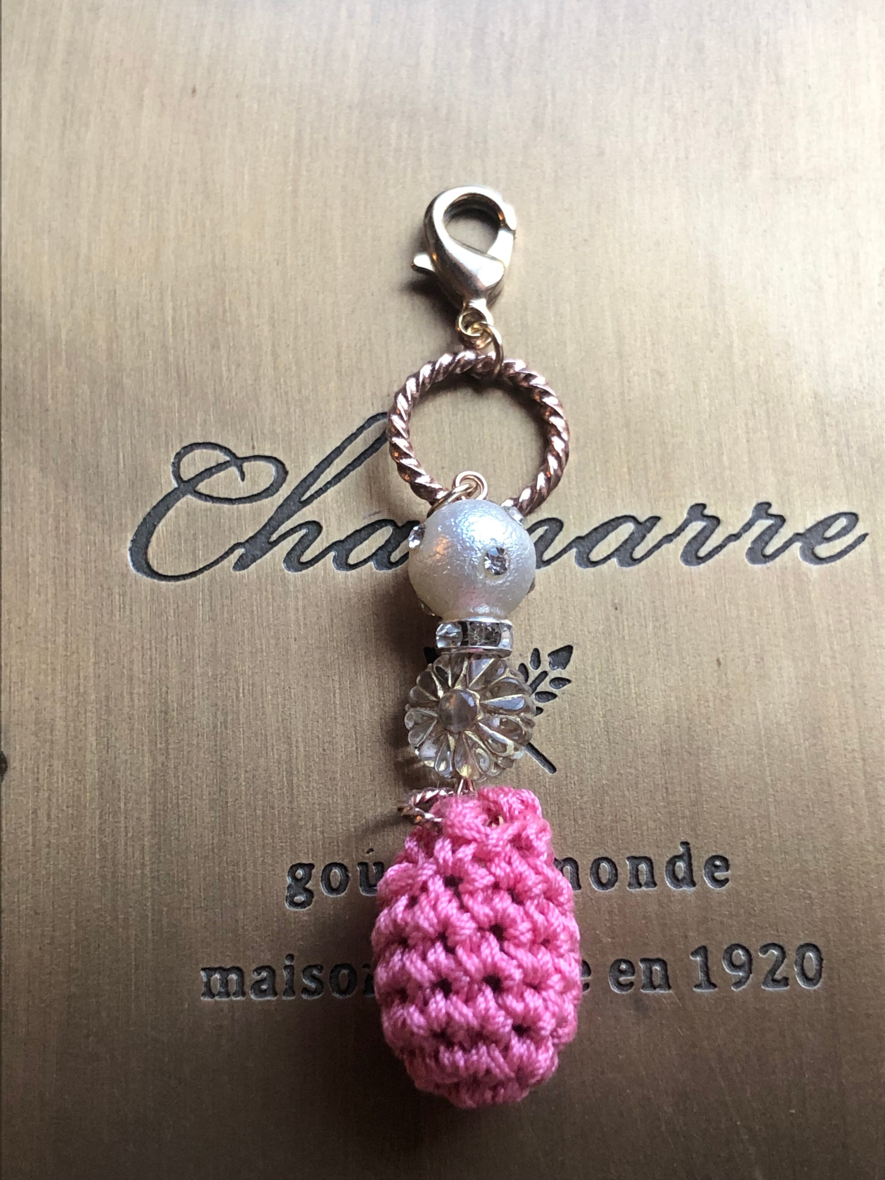 【Azu】ビジューパール×ドイツビーズの香り玉ペンチャーム(ピンク)