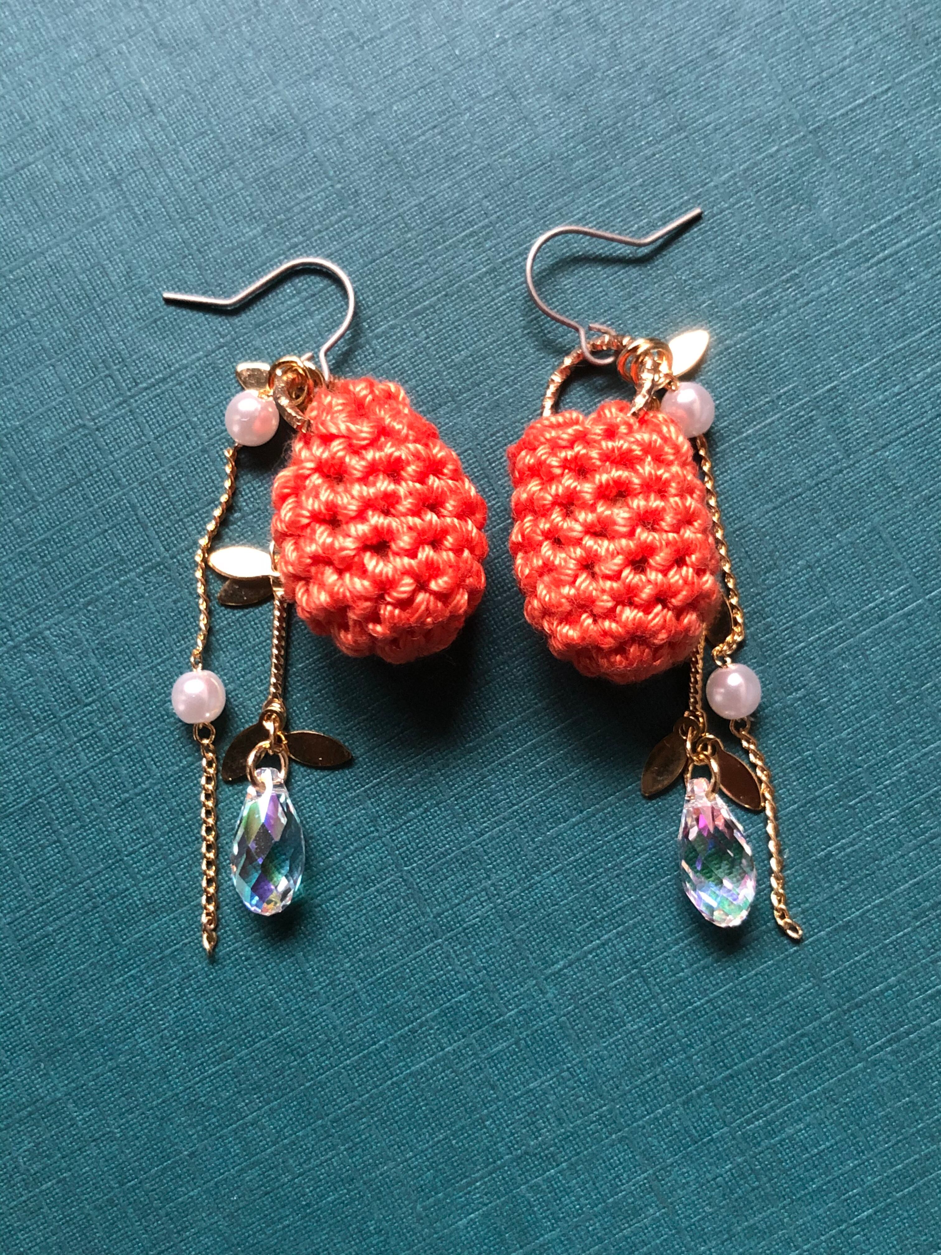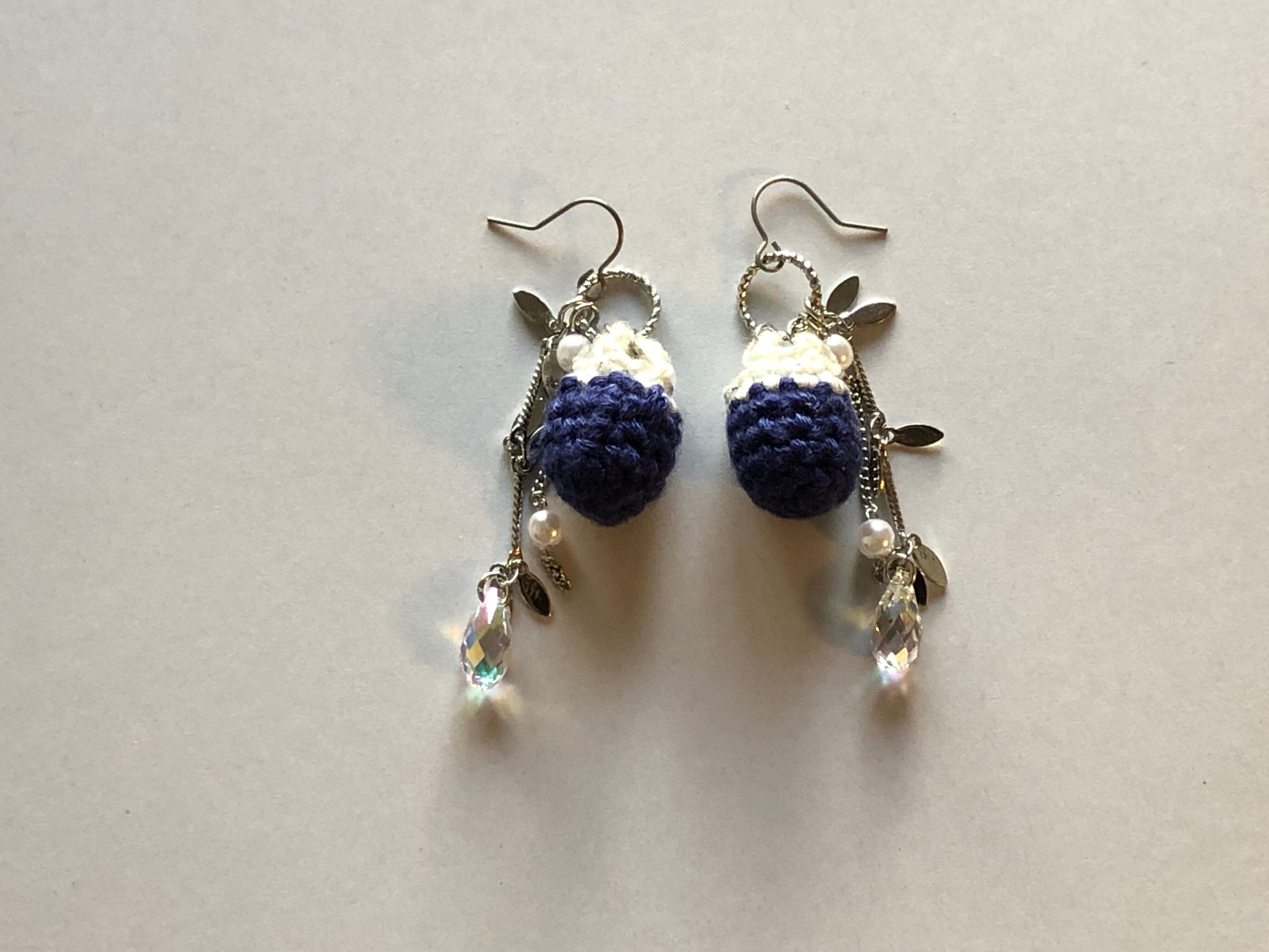 香り玉に、リーフとパールチェーンの下に揺れる滴型スワロフスキーの輝きがときめくピアスです。